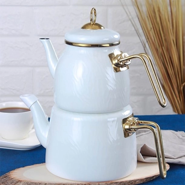 Startseite Küche & Accessories Teekannen Acar Qualita Hüma Teekanne 1.0 L mit 2.0 L Wasserkocher aus Emaille Weiß