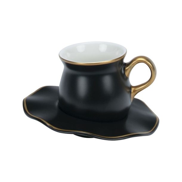 Die Tassen und Untertassen sind aus hochwertigem, bruchsicherem Porzellan gefertigt, das nicht nur robust, sondern auch pflegeleicht ist. Das schlichte schwarze Design sorgt für einen modernen Look.