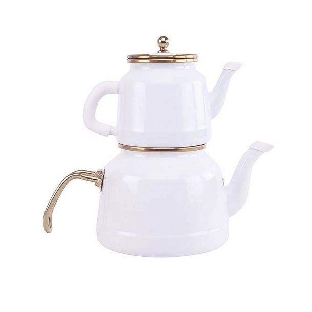 Acar Qualita Hüma Teekanne 1.0 L mit 2.0 L Wasserkocher aus Emaille Weiß