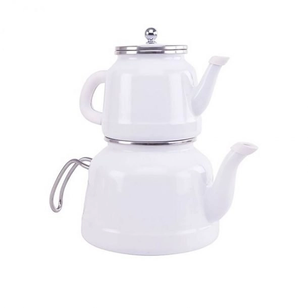 Acar Qualita Hüma Teekanne 1.0 L mit 2.0 L Wasserkocher aus Emaille Grau