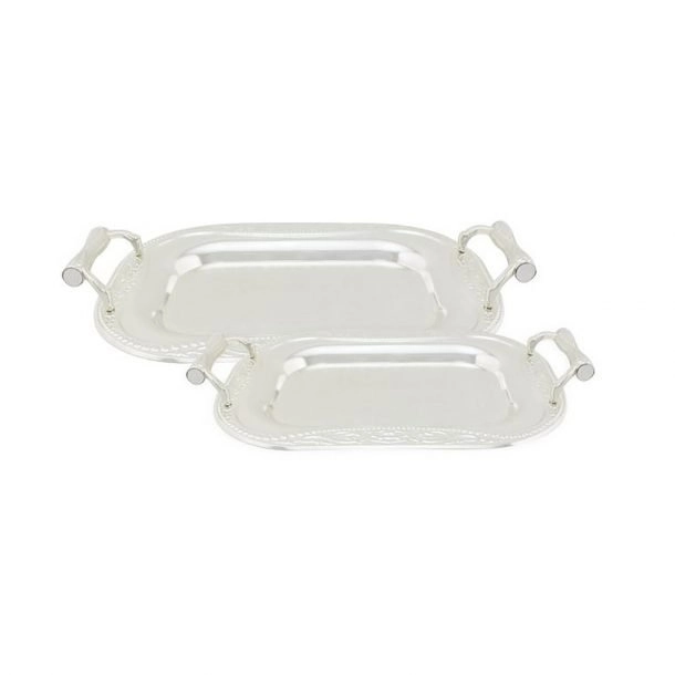 Ein wunderschönes und massives Tablett aus Aluminium – garantiert ein Deko-Highlight. Das silberfarbene Tablett besitzt seitlich 2 Griffe und kann somit auch voll bestückt leicht transportiert werden. Das Deko-Tablett kann sehr vielseitig eingesetzt werden. Es kann zur Deko auf dem Esstisch, einer Kommode oder auch auf der Fensterbank genutzt werden. Das Tablett passt aber auch perfekt in ein schickes Restaurant, eine angesagte Bar oder ein elegantes Hotel.